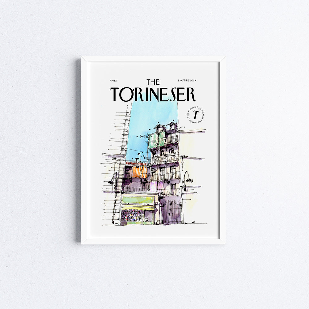 Casa e bottega è il paesaggio sincero di quel piccolo trancio di mondo che è Borgo Dora, il quartiere del Balôn. Una sincerità un po' antica che ha raggiunto lo sguardo e l'anima di Paolo Sanna (@p_bag). Sua è questa illustrazione realizzata per la novantaduesima copertina di #TheTorineser