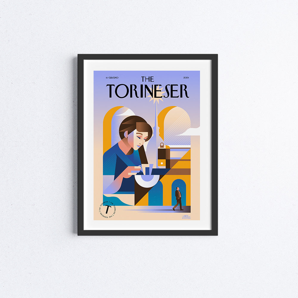 Truly Design cattura l'essenza della città, celebrando l'incontro tra il ritmo quotidiano e l'arte del caffè, simbolo della cultura torinese. In una composizione surreale una figura femminile si staglia tra elementi urbani, immersa in un’architettura di portici. In questo scenario, coesistono due momenti distinti di vita cittadina: una pausa caffè e una passeggiata per le vie di Torino.