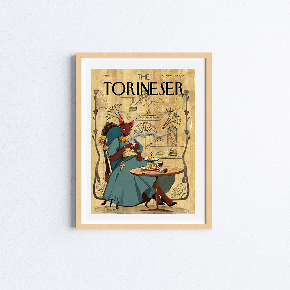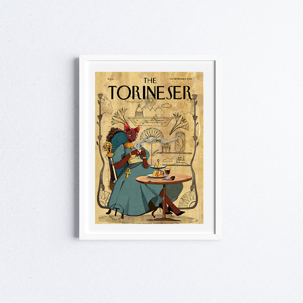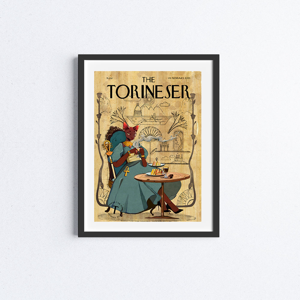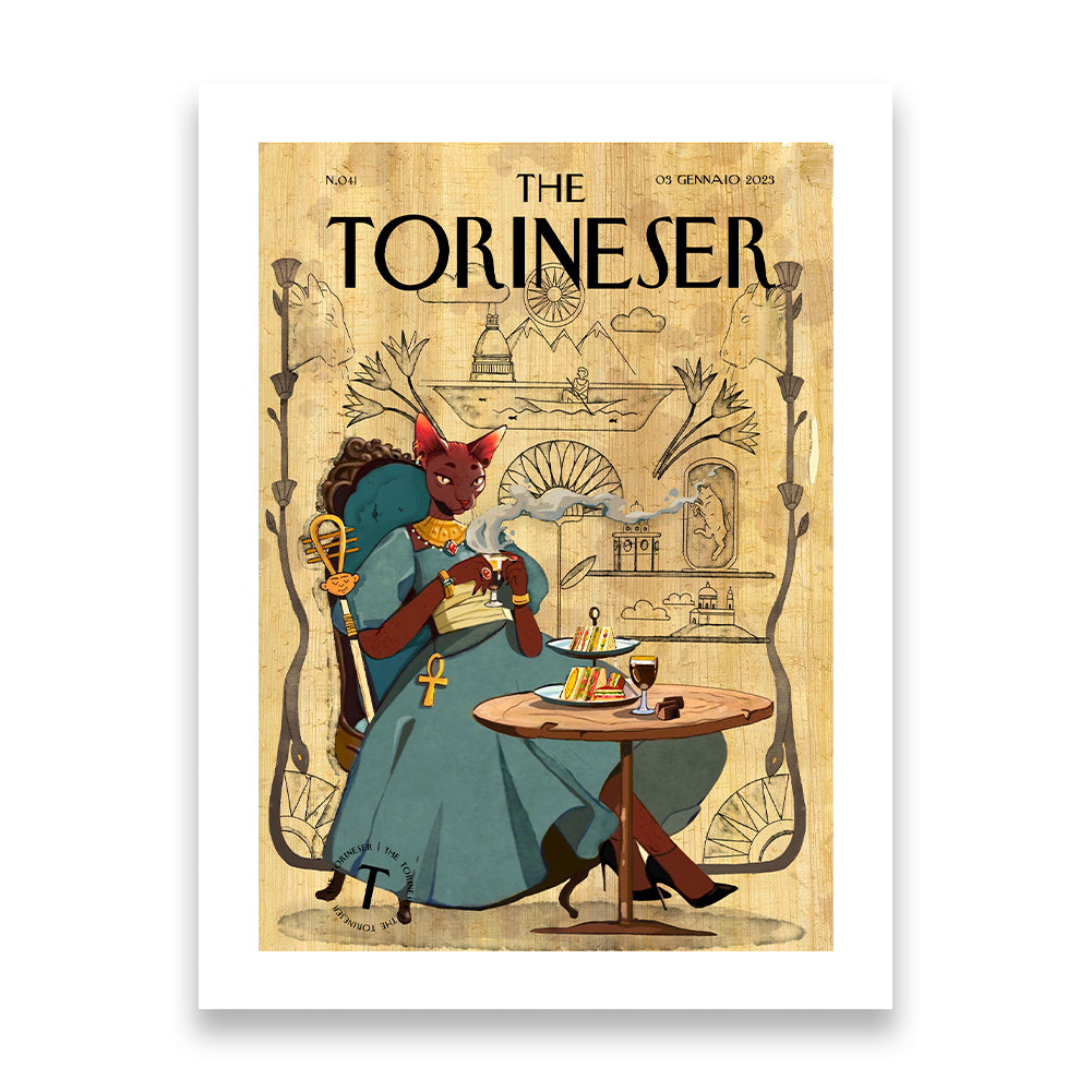 La dea egizia Bastet si confonde tra la gente di Torino, andando a bere un bicerin con tramezzini e gianduiotti. Porta con sè, su una pergamena, antichi e moderni simboli della città.